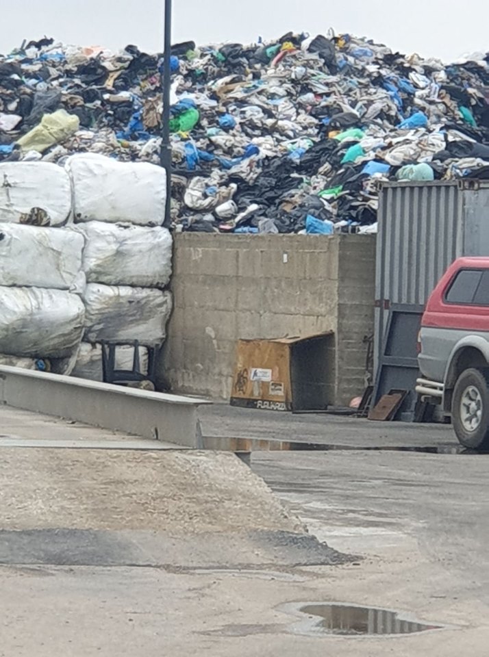 Το ύψος των χύμα απορριμμάτων είναι 3 μέτρα πάνω από τα δέματα. Τα παίρνει μία αρπάγη, τα δραματοποιεί όπως είναι, χωρίς πριν να γίνει διαλογή.