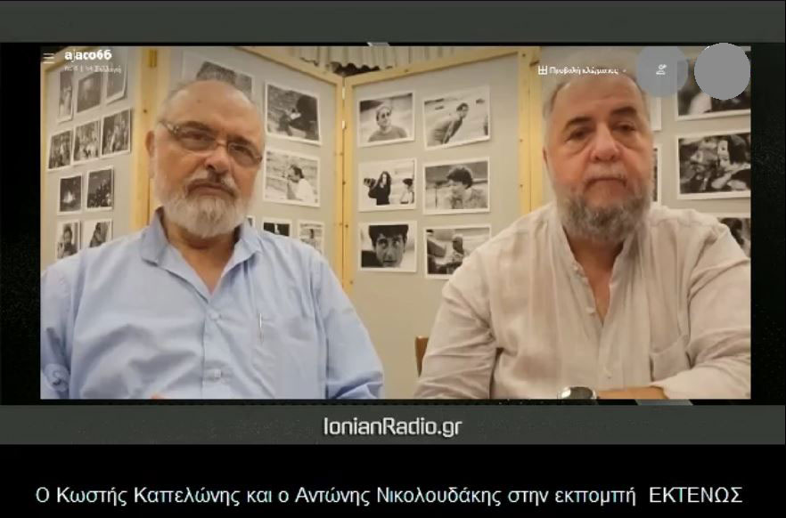 Ο σκηνοθέτης – ηθοποιός και πρώην διευθυντής της Δραματικής Σχολής του Θεάτρου Τέχνης, Κωστής Καπελώνης και ο Αντώνης Νικολουδάκης , Επιχειρηματίας και εκδότης του «ΚΟΝΤΕ ΣΠΟΥΡΓΙΤΗΣ», μιλούν στην εκπομπή ΕΚΤΕΝΩΣ στο IonianRadio.gr για την έκθεση φωτογραφίας: «Επίδαυρος-Έμψυχες εικόνες μιας προσωπικής εξιστόρησης».