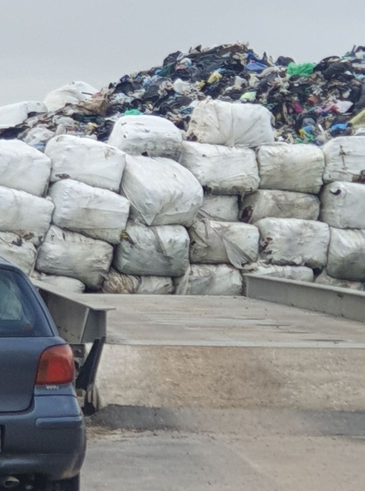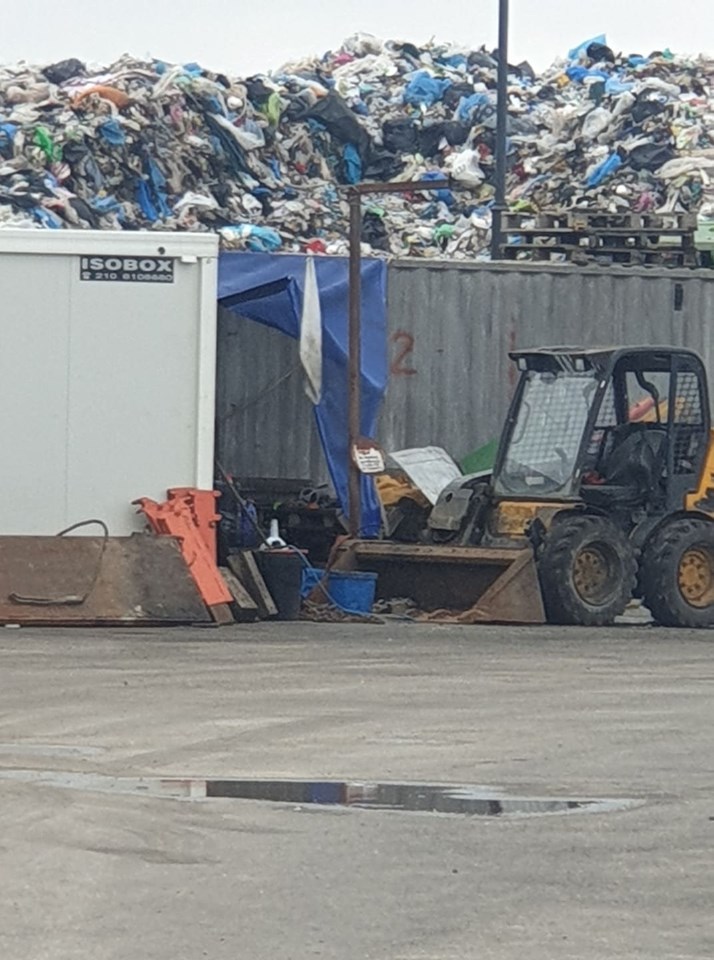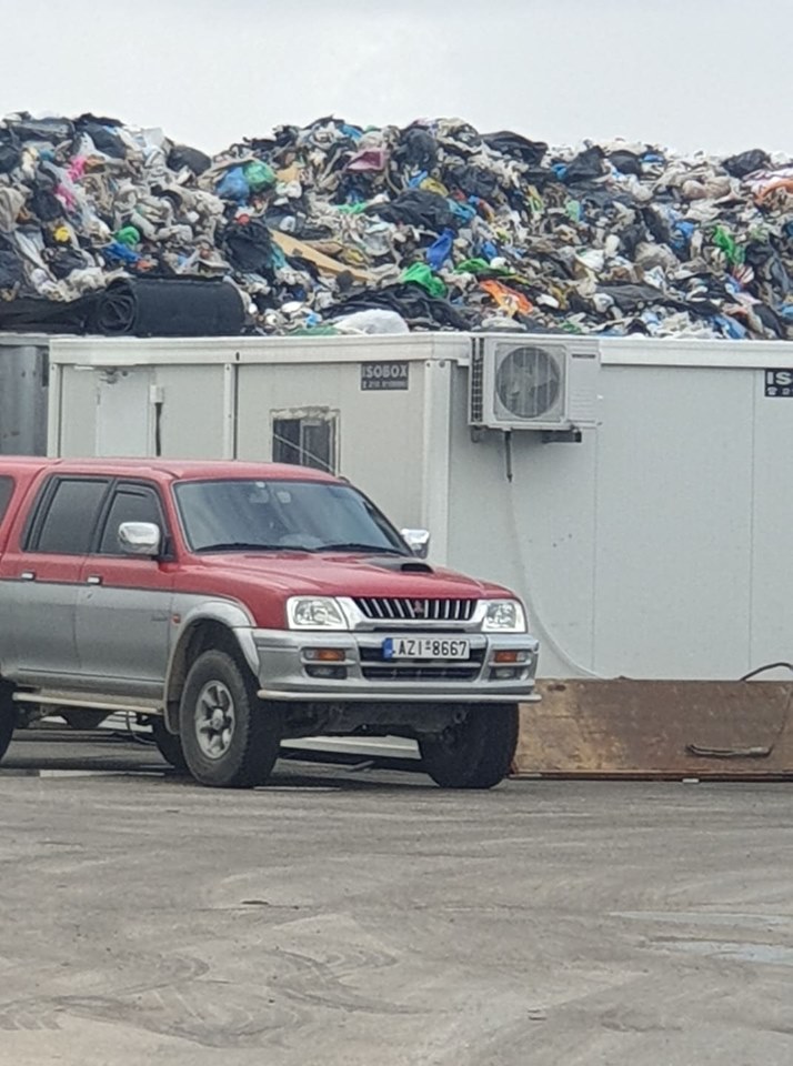 Το ύψος των χύμα απορριμμάτων είναι 3 μέτρα πάνω από τα δέματα. Τα παίρνει μία αρπάγη, τα δραματοποιεί όπως είναι, χωρίς πριν να γίνει διαλογή.